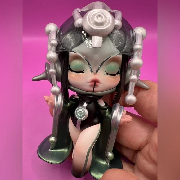 Immerse yourself in calm with this stunning “The Serenity” figure from Pop Mart’s SKULLPANDA The Sound Series. This intricately designed vinyl figure stands approx. 3.94 inches tall and features a magnetic mask with silver beads that give off a metallic shimmer. Beautifully crafted with ABS, PVC, and magnetic elements, this figure comes with its original collector card and box – perfect for display or gifting!✨ Figure: “The Serenity” (#7 of 12 in the series)✨ Size: Approx. 10 cm / 3.94 in✨ Material: ABS/PVC/Magnet✨ Condition: New Without Tags – only opened to confirm contents✨ Includes: Original box + matching collector cardThis elegant and rare collectible is a must-have for any Pop Mart or SKULLPANDA fan!#Skullpanda # #SkullpandaTheSound #DesignerToy #VinylFigure #BlindBoxReveal #ToyCollector #KawaiiCollector #ArtToy #MysteryBox #TheSerenity #CuteAndCreepy #PopMartAddict #CollectibleFigure #PoshFinds