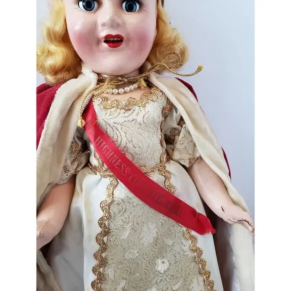 Rare 1940’s Reliable Doll Canada 14" Original HER HIGHNESS CORONATION DOLL * Queen Elizabeth Coronation Doll * Comes with Original Dress, Cape, Necklace, Sash, Shoes, Socks and...