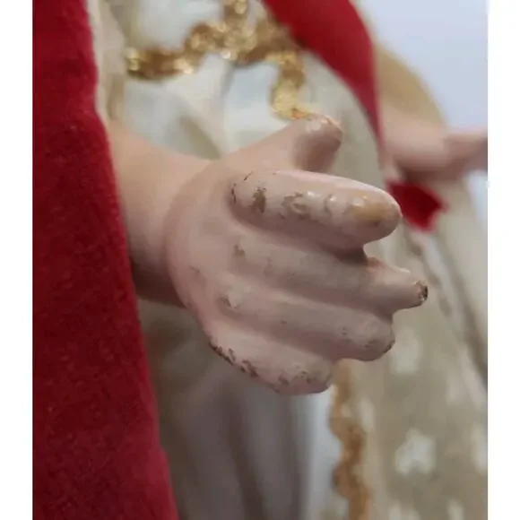 Rare 1940’s Reliable Doll Canada 14" Original HER HIGHNESS CORONATION DOLL * Queen Elizabeth Coronation Doll * Comes with Original Dress, Cape, Necklace, Sash, Shoes, Socks and Paper Crown * Measures 14" long * Eyes open and shut * Head, Arms and Legs MoveVintage, pre-owned condition. All clothing included.The Crown has been taped in the back. Some wear and spots to the clothes.Some light cracks on the face and legs. Both hands have wear and one has cracked.Please see all pictures.