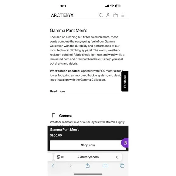 Awesome lightweight climbing hiking performance pants doesnt feel like youre wearing anything .Excellent condition used twiceSleek and agile, the Arcteryx Mens Gamma Pant is...