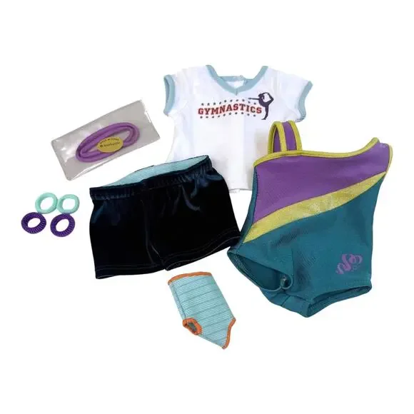 You Are Looking To Buy:American Girl 18" Doll Clothes MCKENNA´S PRACTICE WARDROBE Gymnastics Practice Set Outfit Shorts, Tee Shirt, Leotard, Headband, Hair Ties, Ankle Brace...