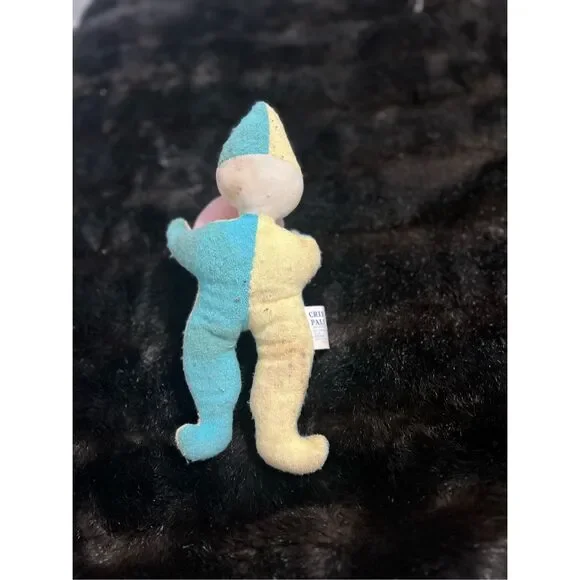 Rare Terry Cloth Clown Pastel Plush Colorblock Rattle Lovey 1988 Crib Pals Vtg
