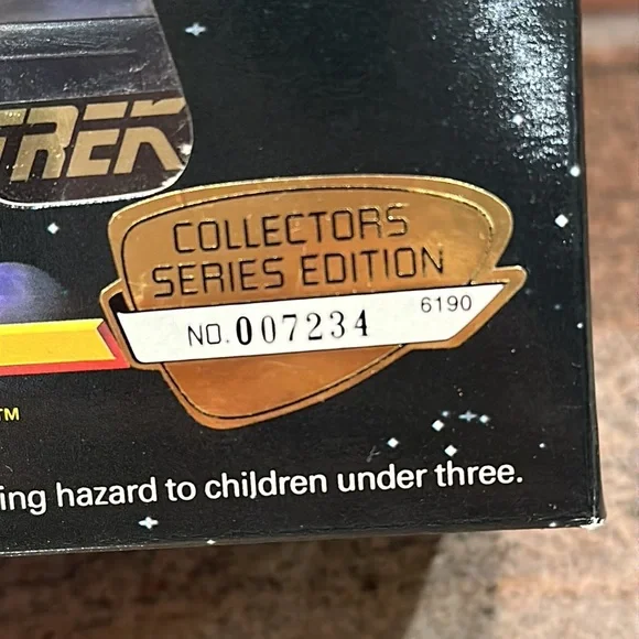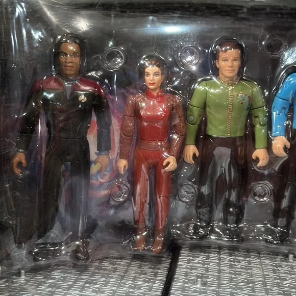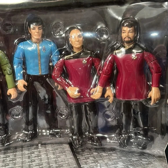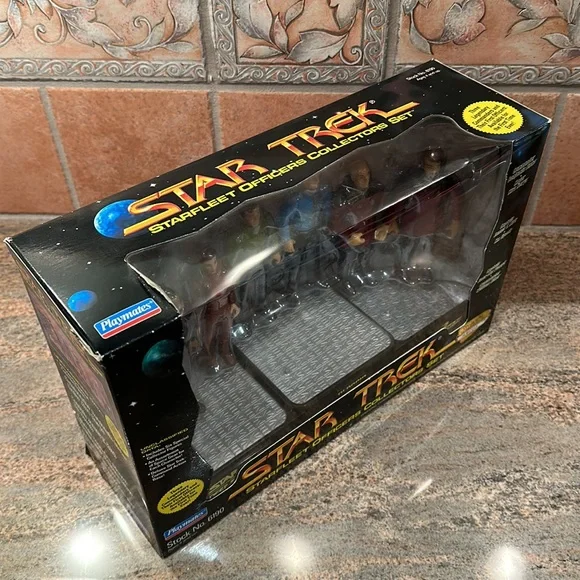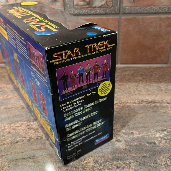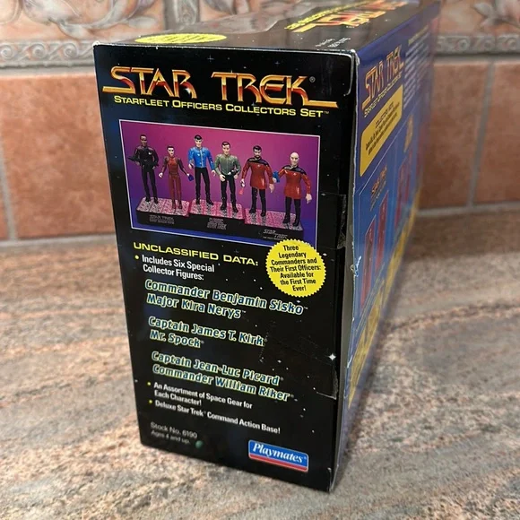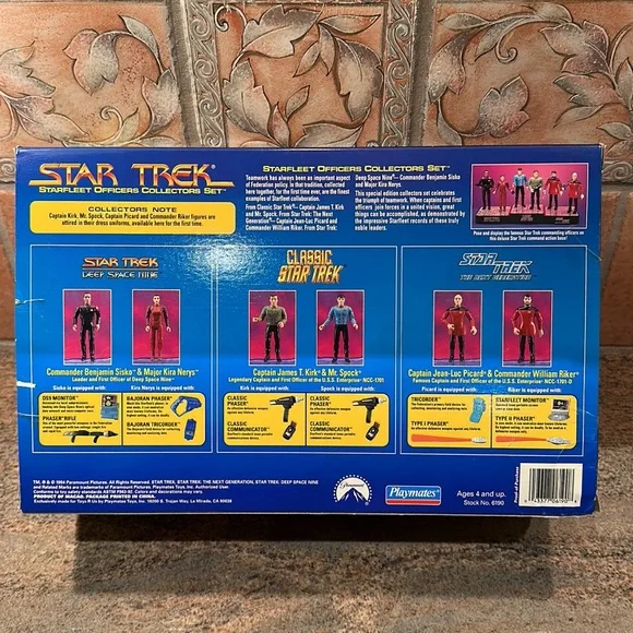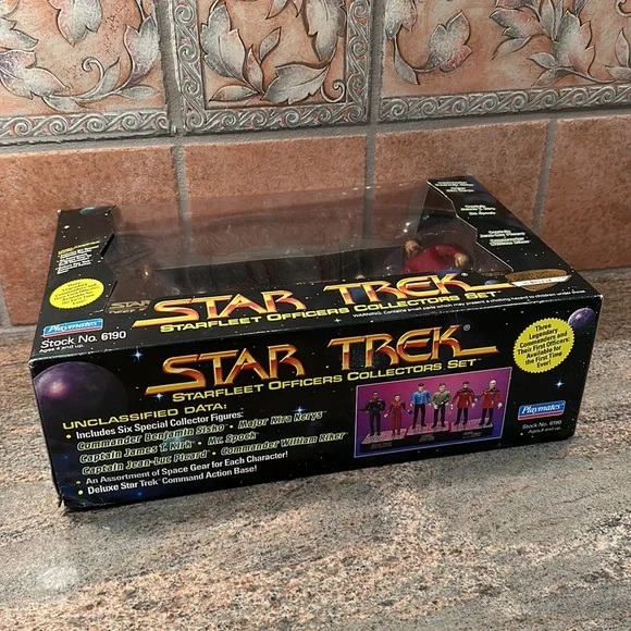 STAR TREK STARFLEET Officers Collector´s Set New In Box 1994 Limited NumberedCollectors Series Edition No. 007234New in box - still sealedStarfleet Officers Set (1994)SET INCLUDES:Captain James T. Kirk with Classic Phaser & Classic CommunicatorMr. Spock with Classic Phaser & Classic CommunicatorCaptain Jean-Luc Picard with Tricorder & Type I PhaserCommander William Riker with Starfleet Monitor & Type II PhaserCommander Benjamin Sisko with DS9 Monitor & Phaser RifleMajor Kira Nerys with Bajoran Phaser & Bajoran TricorderBRAND NEW- NEVER REMOVED FROM BOXQuestions? Just ask! Smoke free homeNot pet free (hypoallergenic dog- doesn’t shed)
