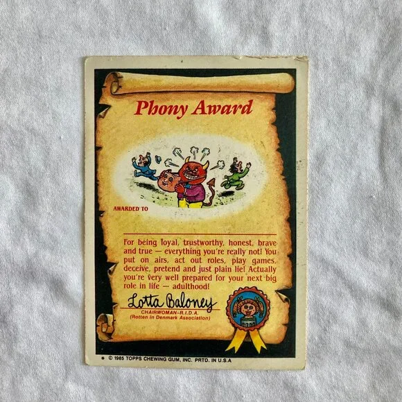 Garbage Pail Kids Card 1985 Topps - 82a Slain Wayne1 card, great condition. Will come protected in plastic.High value - $145.50Price is based on research, competitive rates, PM-suggested pricing, card condition, and any rare printing situations reported by experts. These cards are collectibles and appreciate with time. #collectors #collectible #vintage #valuable #garbagepailkids #GPK #garbagepailkidscards #garbagepailkidsstickers #80s #1980s #humor #birthday #gift #Wayne
