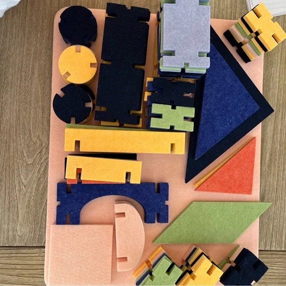 ✨ Classic set and building architectural set ✨ 96 felt pieces and 23 double sided pattern sheets✨ EUC, you may find some dog hair (golden retriever)✨ Not all pieces from website photos included (my dog ate a couple of them)✨ Lightweight and sturdy, these innovative connecting blocks encourage creative problem-solving along multiple mathematical planes. Made from felt out of recycled water bottles, our interlocking blocks foster creative problem-solving and collaborative play.✨ Marigold, Peach, navy, cornflower, pea, rust✨ lowercase toys