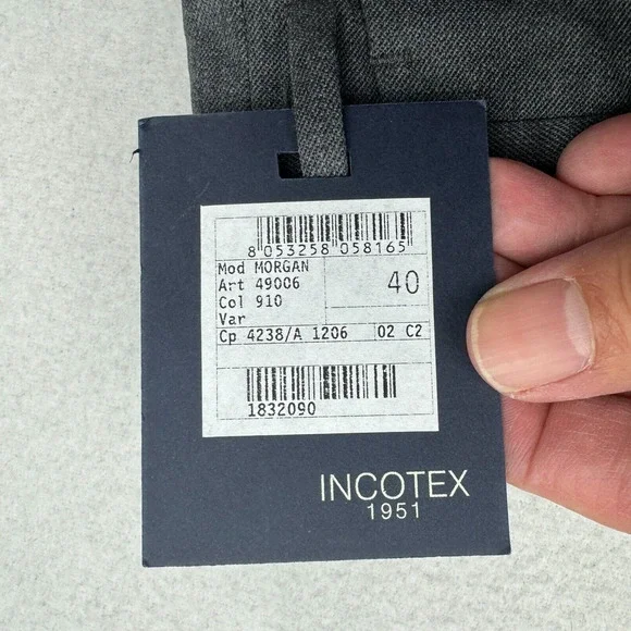 Incotex Pants Mens Gray 40 x 38 Raw Hem 100% Wool Flat Front Slacks Dress NWT