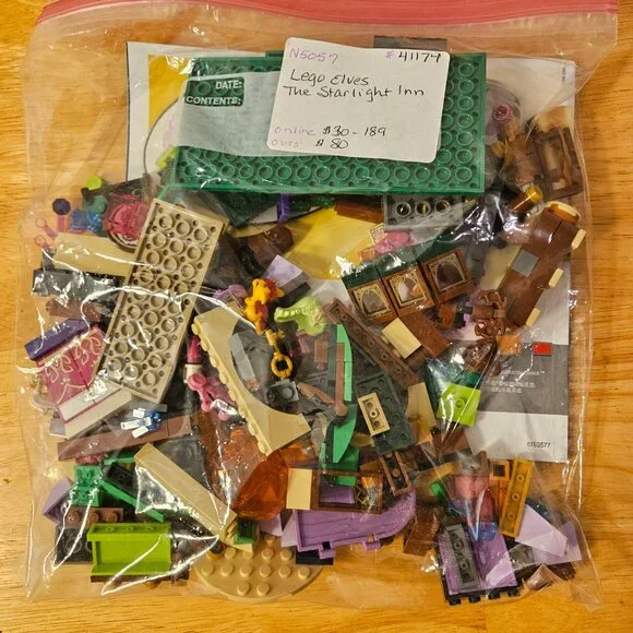 Elves #41174 The Starlight Inn.Complete unboxed set with directions.It has been placed in a clear plastic Ziplock bag.Good Used Condition.ITEM #1822