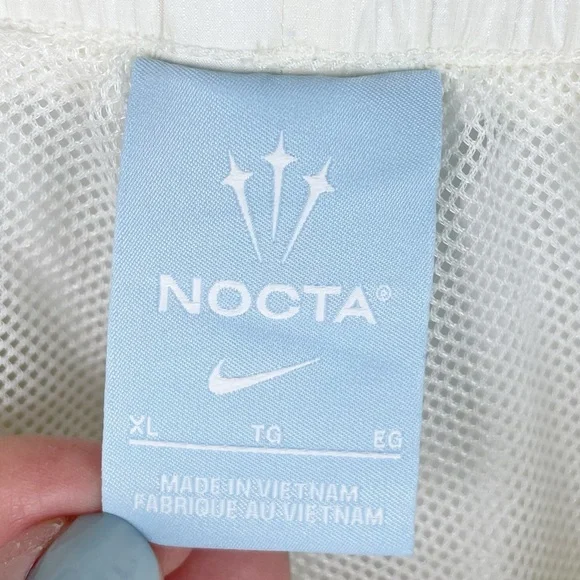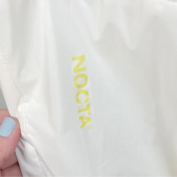 Nike x Drake Crossover NOCTA Golf Woven Pants ´White´ DJ5588-133Rare, no longer available Nike and Drake join forces again to create another highly-anticipated NOCTA capsule and this season it’s dedicated to golf. Made from lightweight and breathable polyester, these pants come equipped with five pockets to store your valuables when on the course, while elastic trims allow for the perfect fit. A golf tee badge on the back is seen throughout the collection, showcasing the rapper´s love for the sport.Men´s windbreaker athletic pants 100% PolyesterDrawstring Waist4 Front PocketsBack PocketPrinted BrandingElasticated TrimsStyle Code: DJ5588-133Size XLExcellent pre-owned condition Hardly worn Approximate measurements: Waist: 18.5" acrossRise: 14”Inseam: 28”