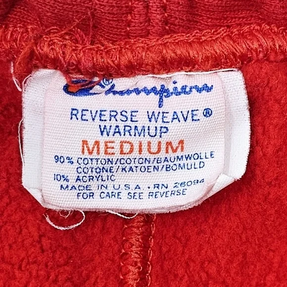 Vintage 80s Champion Reverse Weave Warmup Sweatpants Men’s Size Medium Red USA. Good Preowned condition no rips or holes. Made in USA. All measurements are pictured. All sweatpants are packed in a poly bag after listing. One day handling time.