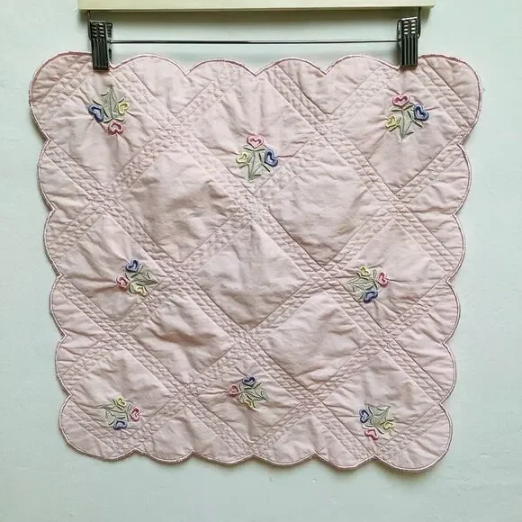 EMBROIDERED BLANKET FROM BITTY BABY COLLECTORS EDITION TRUNK. RELEASED 2005 RETIRED 2008. SUPER CLEAN GREAT CONDITION AMERICAN GIRL BITTY BABY EMBROIDERED PINK BABY BLANKET ONE SMALL MARK ON BACKPLEASE SEE PHOTOS FOR DESCRIPTIONAPPROXIMATE MEASUREMENTS 19”x19”