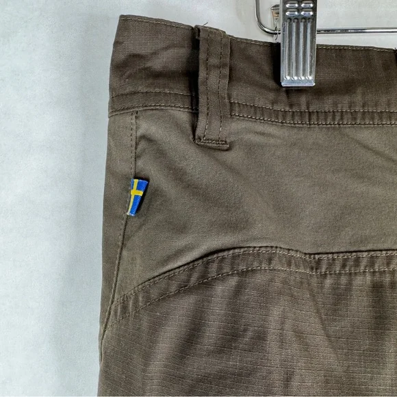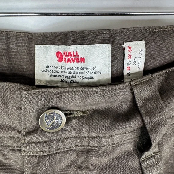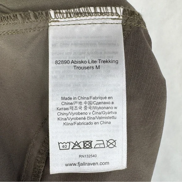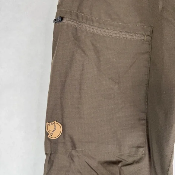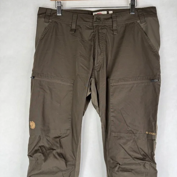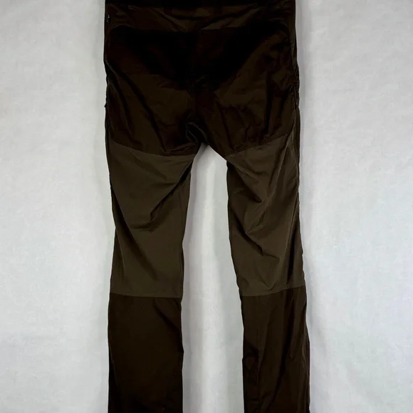FJALLRAVEN Abisko Lite Trekking Trousers Style: 82890Color: Dark OliveSize: 33-34 LongLike new!Perfect condition. • Pants for hiking, backpacking, and climbing• G-1000 Lite fabric is durable, stretchy, and water-resistant• Reinforced lower legs and inseam enhance durability• Ventilation openings along hips• Loops on back with large hip pockets for carryinggear• Adjustable cuffs and hooks give a snug fit around hiking boots• Regular fit with mid-rise waist for added coverage• Fjallraven has been crafting durable outdoor goods since the 1960sWhen our route consists of long bushwhacks and high trails that criss-cross through boulder fields, we count on the Fjallraven Abisko Lite Trekking Trousers to take care of our legs every step of the way. Made from Fjallraven´s G-1000Lite fabric, these pants are light and stretchy to provide exceptional breathability, making them ideal for summer backpacking trips.In order to increase their overall durability, Fjallraven added reinforcements along the lower legs and inseam to protect those prone-to-wear areas. The cuffs are equipped with adjustable tabs and boot hooks, which function similarly to gaiters, and the regular fit with mid-rise waist is specifically designed to promote mobility and provide additional coverage to the lower back for when you´re hiking with a heavy pack.