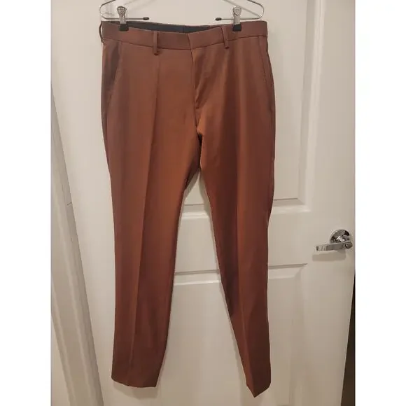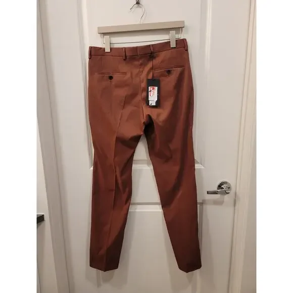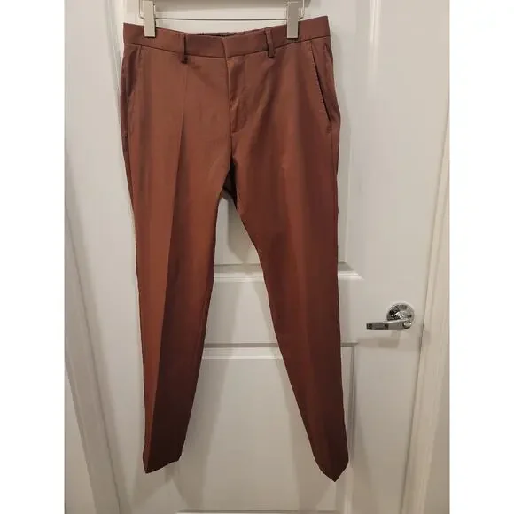 Hugo Boss Genius Slim Fit Rust Trousers Condition: NWTSize: 30RInseam: 32"Zip fly with hook closure. Flat front. Belt loops. Two side slant pockets; two back button-through welt...