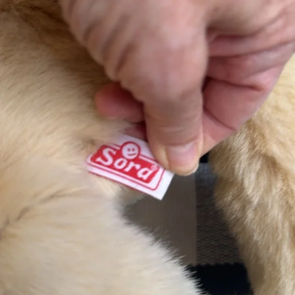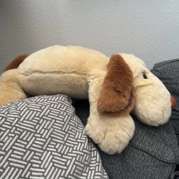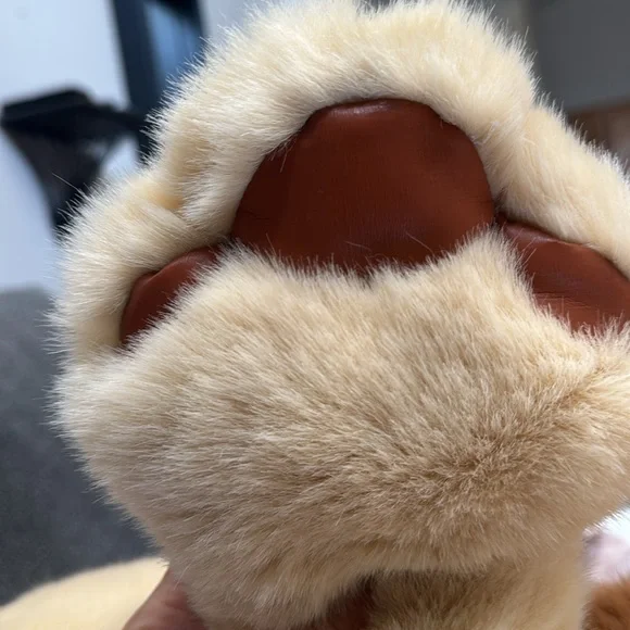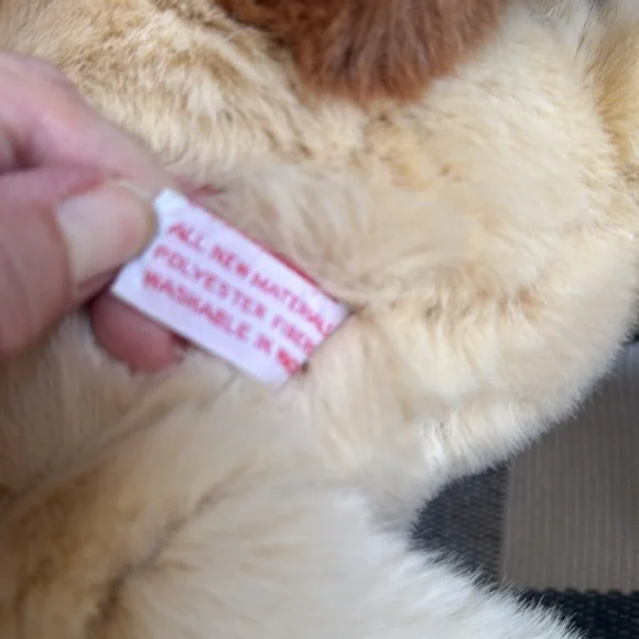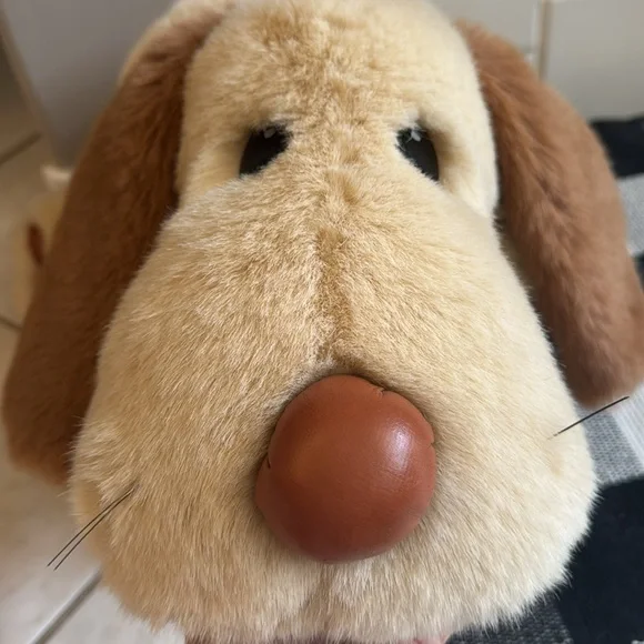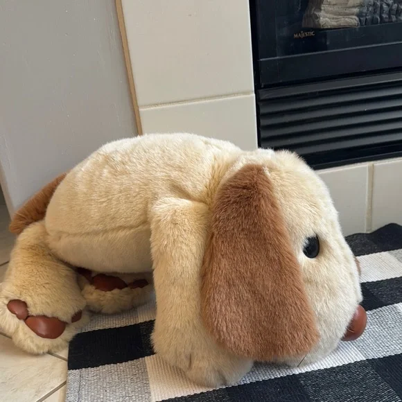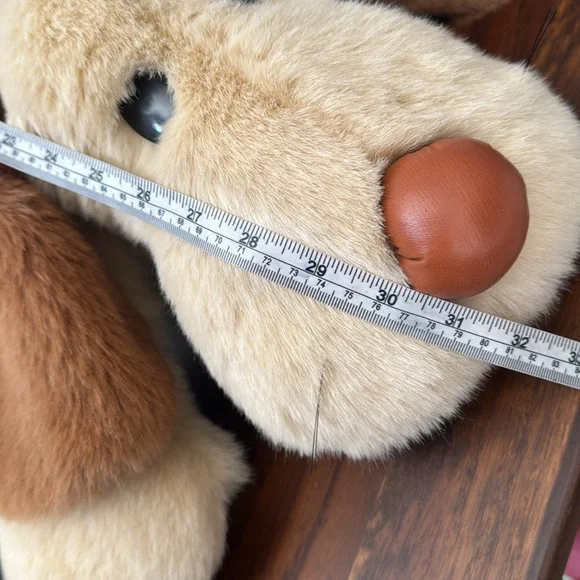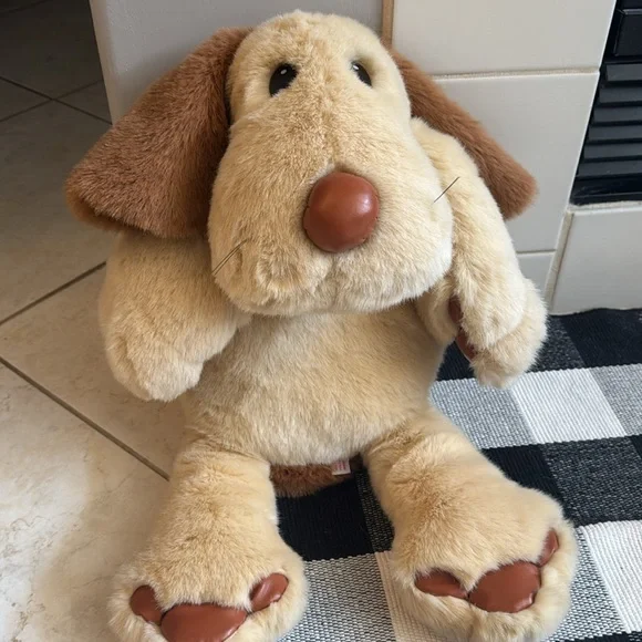 Faux leather paws and nose. He is extremely soft and clean. No signs of wear. Designer stuffie. Used to decorate a child’s room. Measurements:32” end to end.