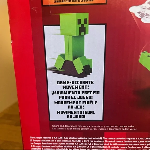 Age 6+Batteries Not IncludedBatteries Needed:3 AA for Creeper & 2 AAA for RemoteSpecifications:Company: MattelTheme: MinecraftProduct Type: Remote and Radio Control ToysCharacter:...