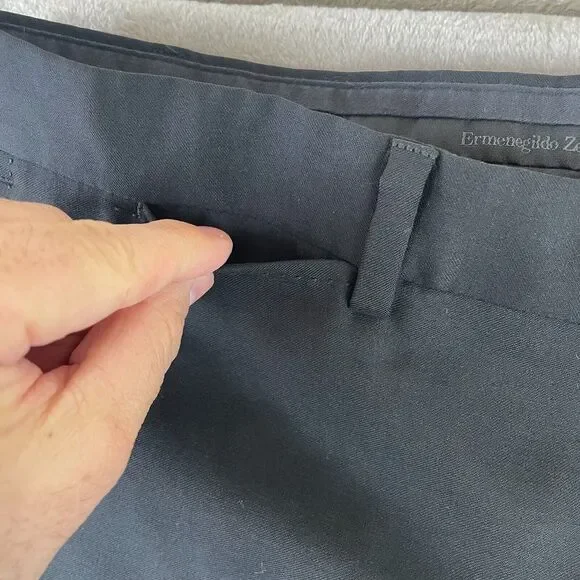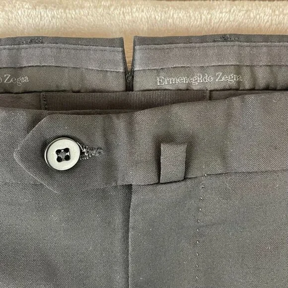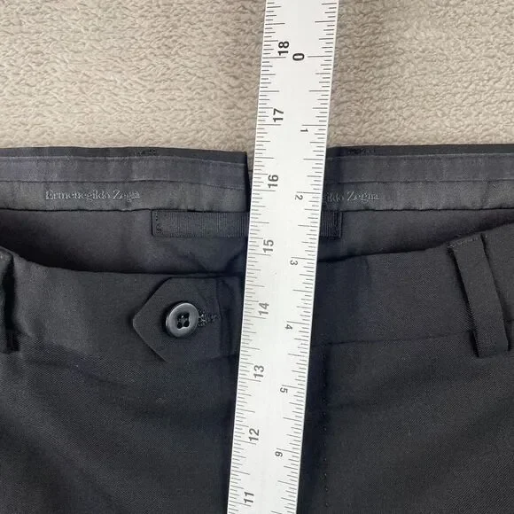Ermenegildo Zegna Dress Pants Men 40x35 Black Wool Flat Front Modern Fit $495Please view pictures for measurements. This item is in Preowned condition. Please view and zoom in on all of the pictures as they are part of the description.(SEE MEASUREMENTS TO ASSURE PROPER FIT)We have a huge selection of New and Preowned items and we list new items daily, so please click the "SAVE SELLER" button so you can be updated with our new listed items. THANKS FOR THE SUPPORT!All used clothing are cleaned and laundered that meets eBay policy.