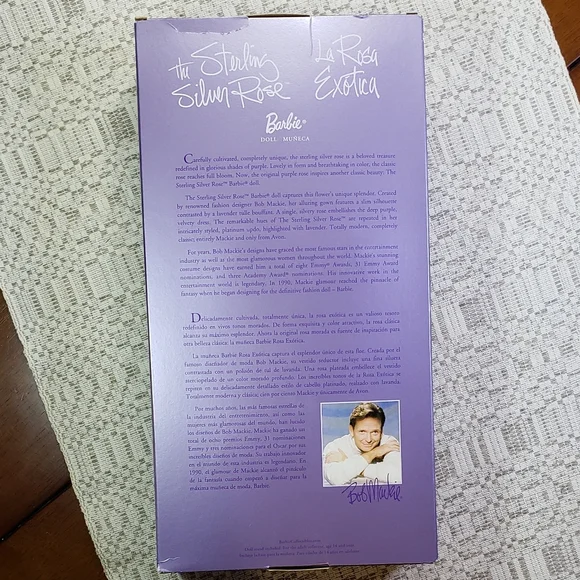 Barbie the Sterling Silver Rose/La Rosa Exotica Doll features a stunning dark velvet purple dress designed by Bob Mackie.Never Removed from the Box.Box has some shelf wear.Extra...