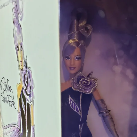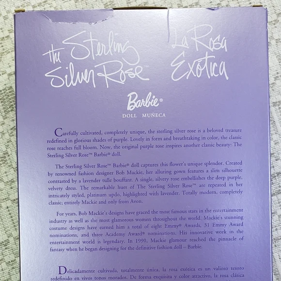 Barbie the Sterling Silver Rose/La Rosa Exotica Doll features a stunning dark velvet purple dress designed by Bob Mackie.Never Removed from the Box.Box has some shelf wear.Extra 10% off on 1+ items. (simply add/bundle 1+ items in a cart and shipping paid once)