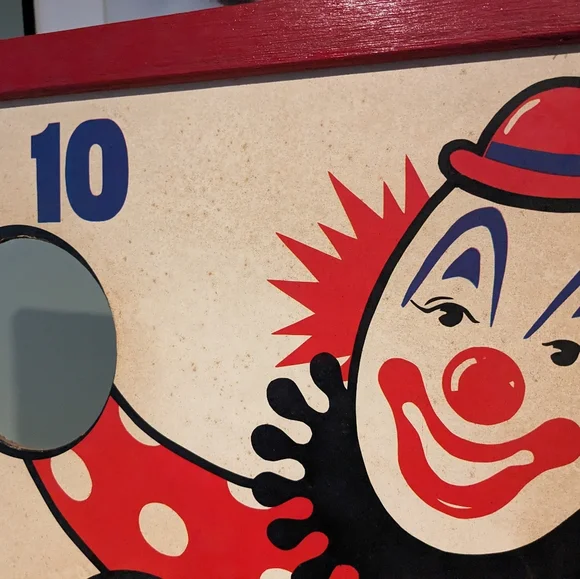 1950´s Vintage CORN HOLE GAME Carnival Clown Bean Bag Toss Board GUC