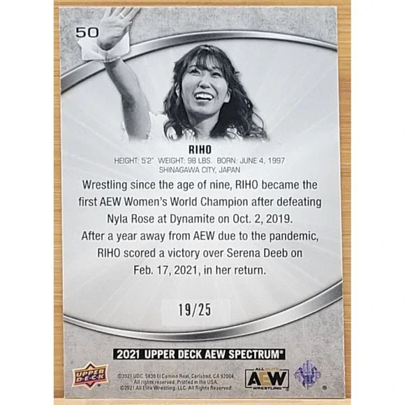 2021 UPPER DECK AEW SPECTRUM RIHO GREEN #D/25