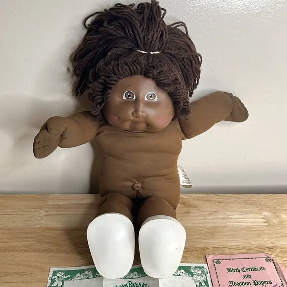 Authentic original cabbage patch kids doll DARDA DIXIEComes with birth certificate and adoption papers and first birthday card.Has a lot of wear for the birth certificateNo clothes are included but there are shoes as seen in pictures.Cabbage patch kids 1978, 1982Vintage condition. Please see video she has a small hole on her right arm up on the shoulderSignature on left butt cheek dimples on each cheek