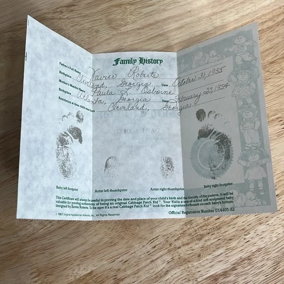 Original authentic Black Cabbage Patch Kid 1982 birth certificate