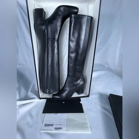 Lafayette 148 New York Nappa leather black knee/-high boot, size 8M/38.New in box, purchased directly from Lafayette 148 with receipt shown. Made in Italy from very butter/soft...