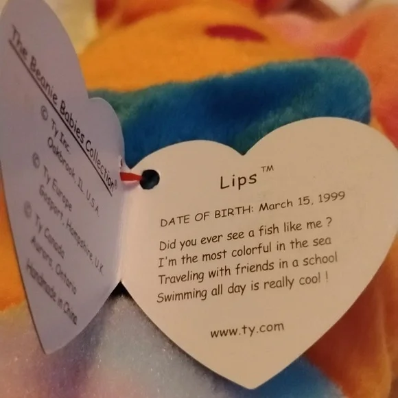 rare ty beanie babies Lips, date of birth March 15th 1999 great find, great addition to your collection new with tags hang tag