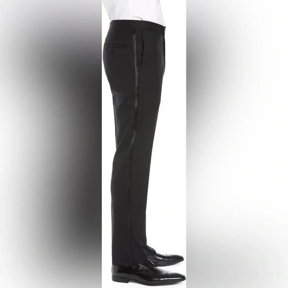 NORDSTROM Slim Fit Stretch Wool Tuxedo Dress PantsNWOTTrim-tailored tuxedo pants made from premium stretch wool are finished with satin side stripes for a suave, streamlined...