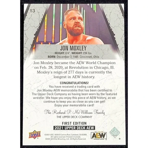 2021 UPPER DECK AEW JON MOXLEY GOLD RELIC #D 81/199