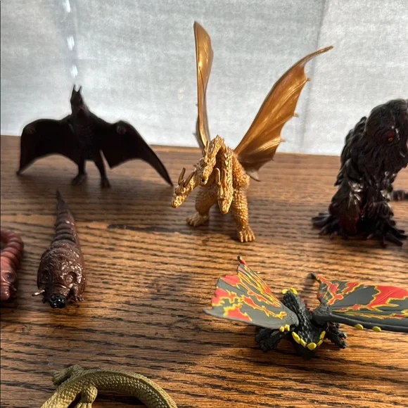 According to Google, each one of these is from the Godzilla universe from many different movies according to Google. The last pictures shows one figure that I can’t get to stay...
