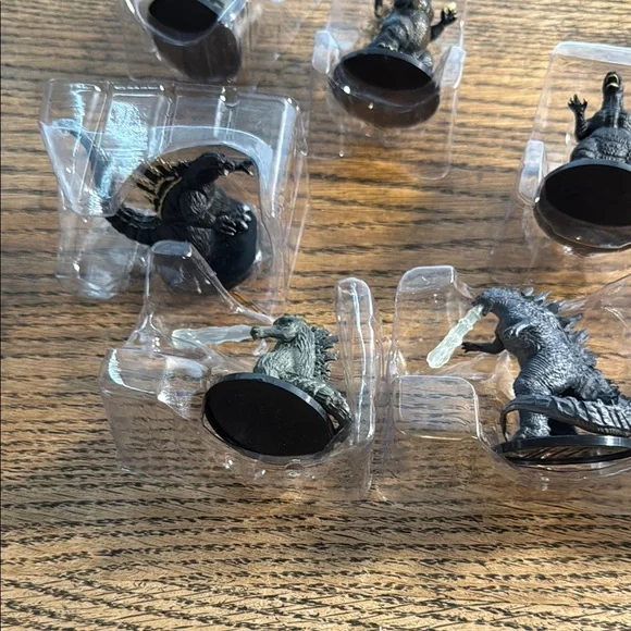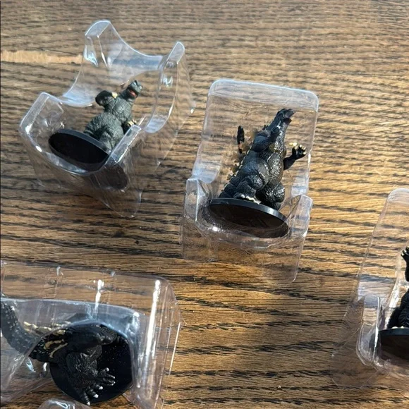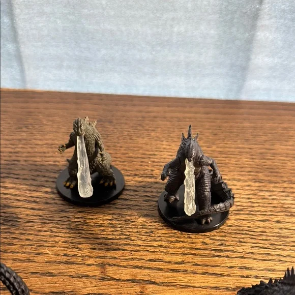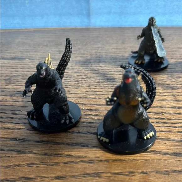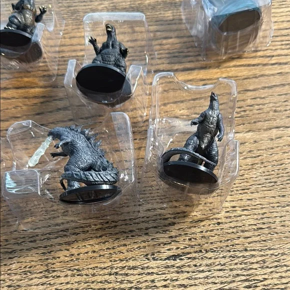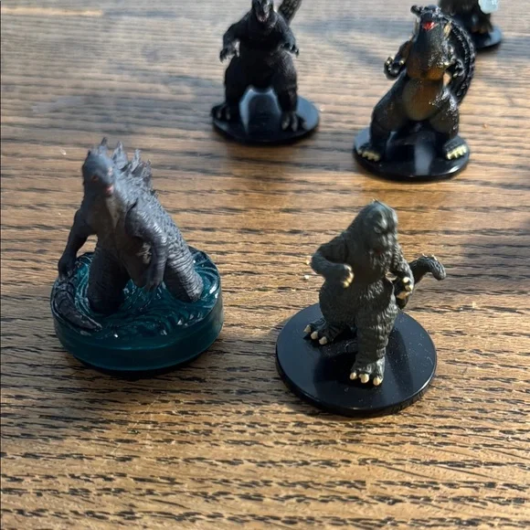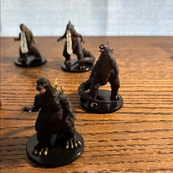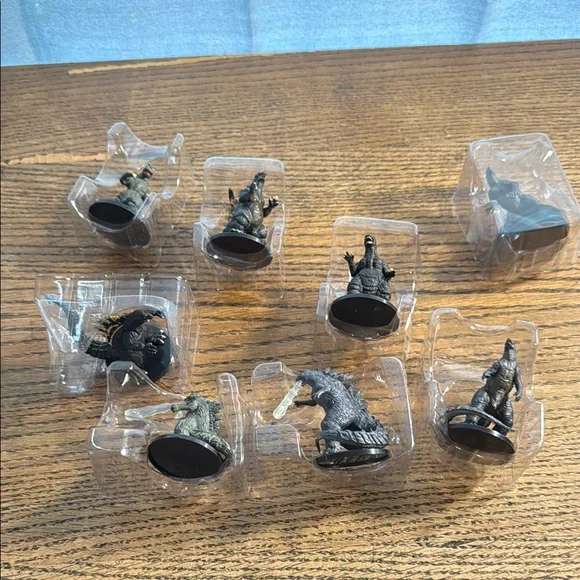 Set of Godzilla miniature figurines. Perfect for collectors and fans. Features detailed designs.Non-smoking house Fast shipping As seen in photos This price is for all scene in pictures . Total of eight figures.