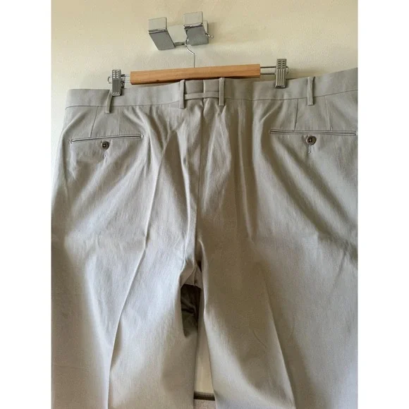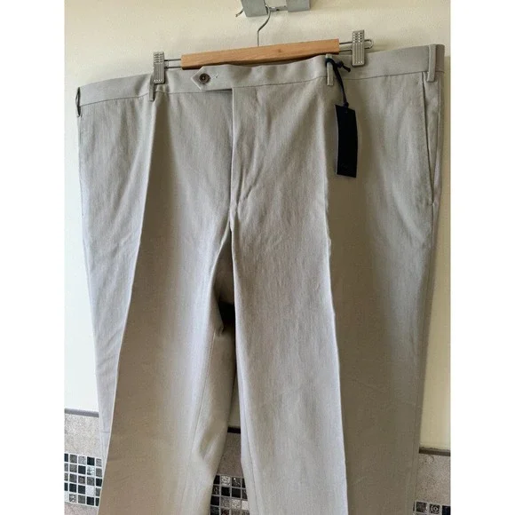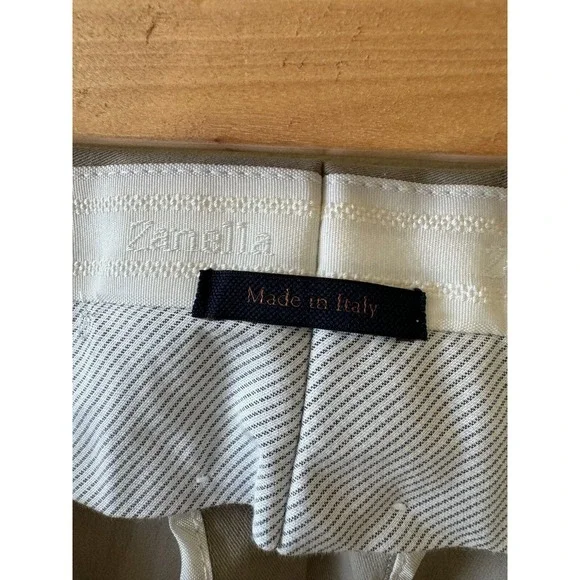 NWT ZANELLA Cotton Blend Beige Men´s Trousers SZ 46 Made in ItalyThese ZANELLA cotton blend beige men´s trousers are in excellent condition as they have never been worn. They feature: * classic flat front * side pockets * back slashed pockets * fabric content: 99% cotton, 1% elastane * Made in Italy * size 46Laid flat these pants measure: 46´´ waist, 11´´ rise. 29.5´´ inseam, 39´´ in length, and 8´´ leg opening.Listing and template services provided by inkFrog