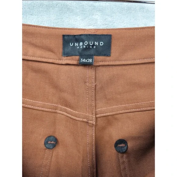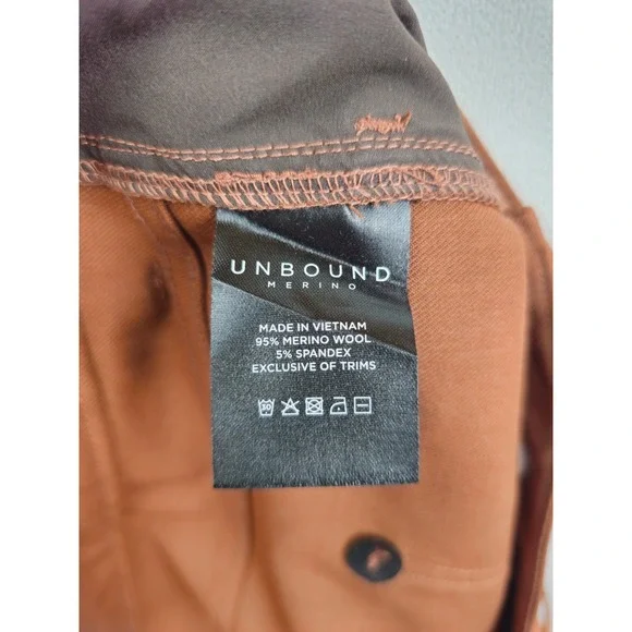 UNBOUND MERINO Pants Rust Brown Wool Stretch Travel 5 Pocket Commuter Men 37X28