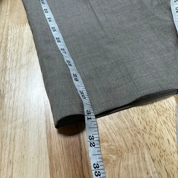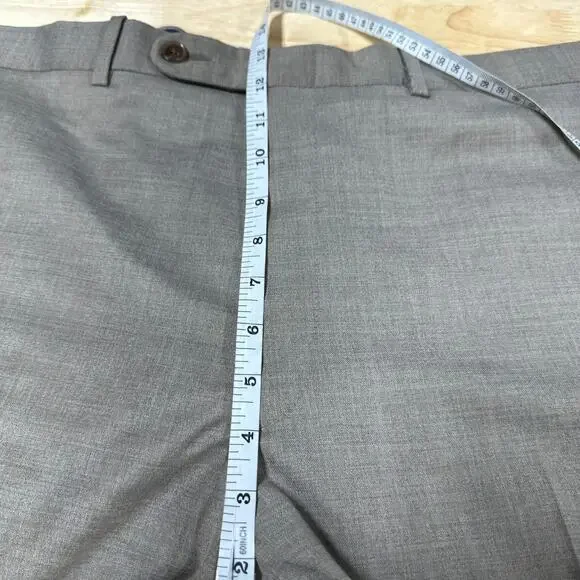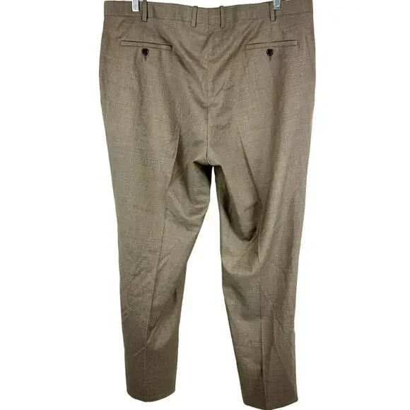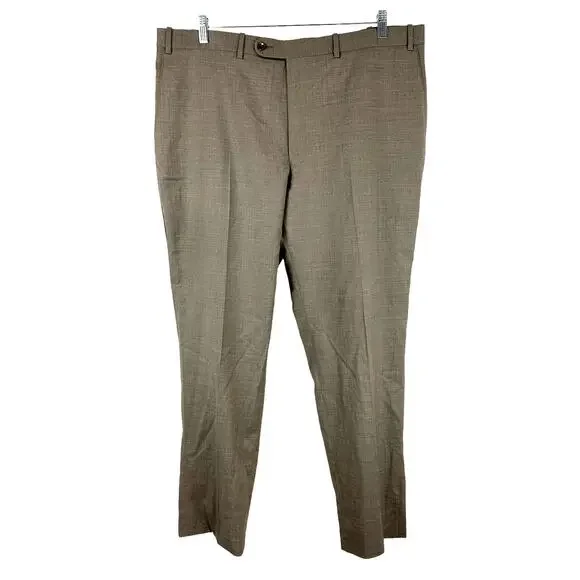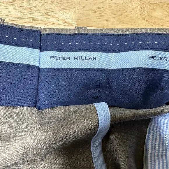 Peter Millar Harker Flat Front Solid Stretch Wool Dress Pants Size 42R Tan NWOTMen´s size 42R in new without tags condition Fine Italian wool with a bit of stretch means a flexible fit in handsome dress pants in a clean flat-front cut.Zip fly with button-tab closureSlant pockets; back button-welt pockets99% wool, 1% spandexDry cleanMeasurements are pictured flat and approximateWaist 21"Rise 13"Inseam 31"LL0471 lb 3 ozTAGS: boho, bohemian, retro, chic, romantic, spring, summer, trendy, preppy, pretty, easter, vacation, resort, travel, Europe, bbq, brunch, bachelorette, vegas, revolve, shopbop, denim, 90´s, date night, cruise, ball, pinup, rockabilly, beachy, Y2K, barbie, barbiecore, minimalist, staple