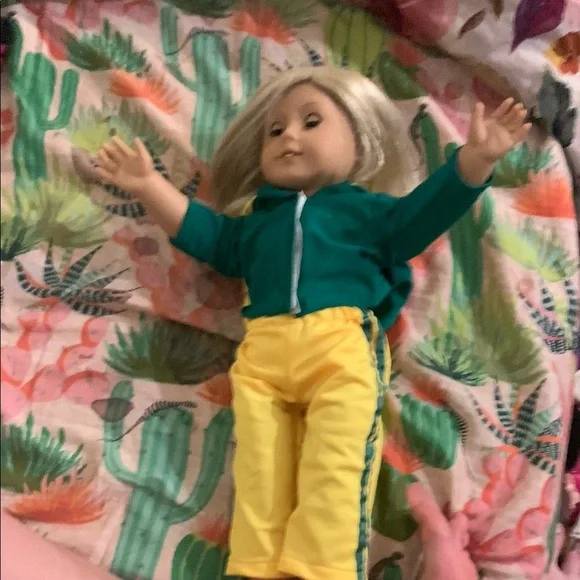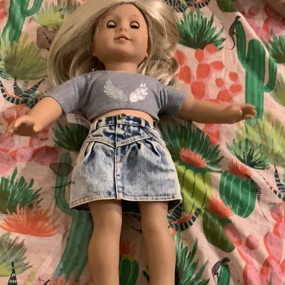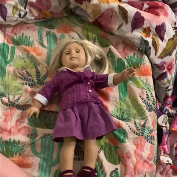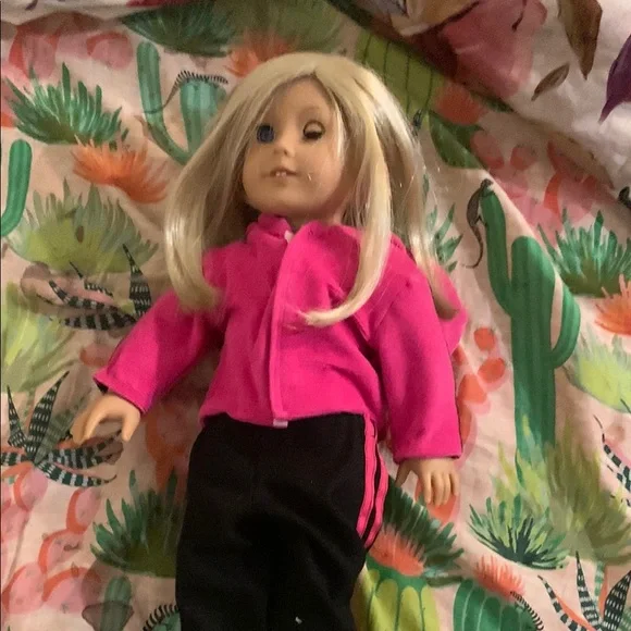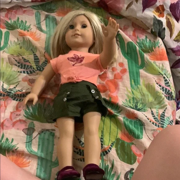 This delightful doll features a cream and tan ensemble, perfect for imaginative play. With its classic pose and well-maintained appearance, it makes a charming addition to any collection. This is amazing almost brand new and almost never used. Doll comes with eight outfits and three pairs of shoes and many more accessories and surprises inside. It is a great toy for all ages, American girl doll not all outfit outfits or American girl
