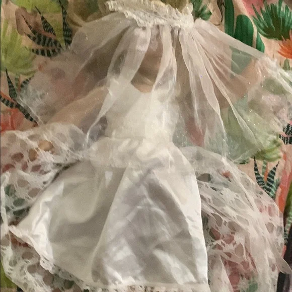 This delightful doll features a cream and tan ensemble, perfect for imaginative play. With its classic pose and well-maintained appearance, it makes a charming addition to any...