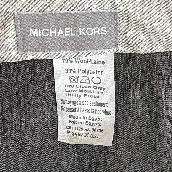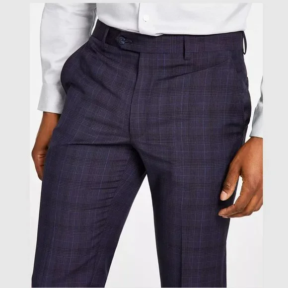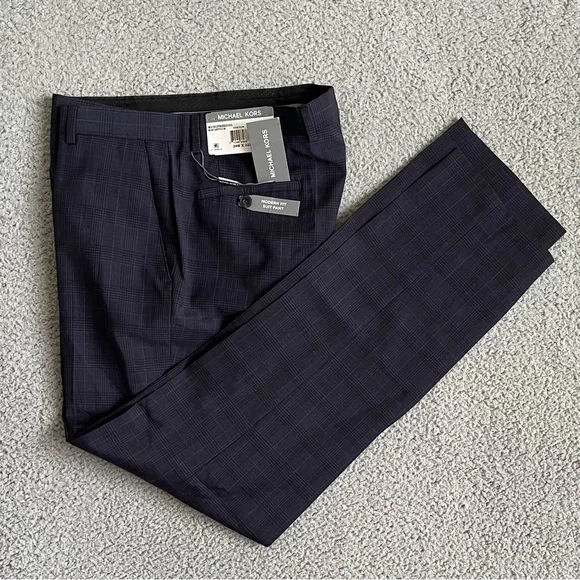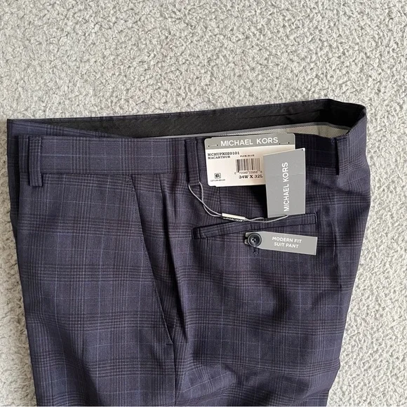 MICHAEL KORS Men´s Pants Blue 34W X 32L Modern Fit Wool-Blend Plaid Suit Size 34x32Color: Plum / BluePlaidFIT & SIZINGClassic fit pants sit at the waistrelaxed fit through hips and thighs straight leg openingPRODUCT DETAILThe classic-meets-modern look makesthe pants sophisticated for day or night.Two side slant pocketstwo button-through back welt pocketsImportedZip fly with button-and-hook closurebelt loopsFlat frontfinished hemno cuffFABRIC & CAREDry cleanWool/polyesterItem 14844019GR00003173