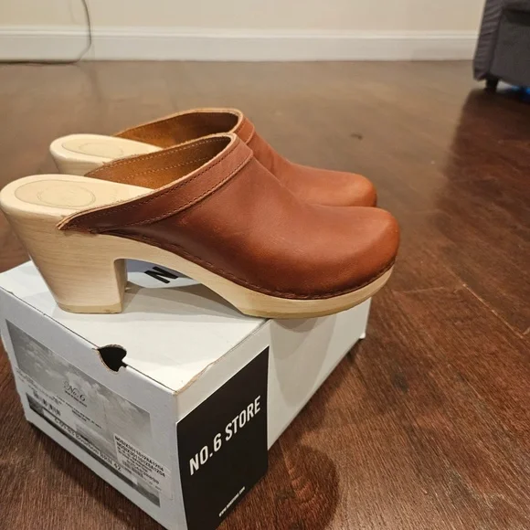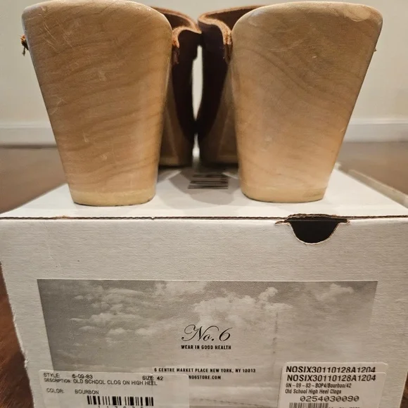 Purchased from Shopbop and worn once. Excellent condition. Perfect everyday. Color: Bourbon (Brown)Size: 42(No.6 specfic sizing) or US 11/11.5Heel: 3in / 75mmPlatform: 1in / 25mmSoft, neutral-toned leather and a could n´t-be-more-old school wood heel, these No.6 clogs are a closet classic that makes for an effortless pairing with skirts or jeans.Leather: CowhideClog silhouetteChunky heelPlatformRounded toeSynthetic sole***Like new. Excellent condition - worn once for 1 hour