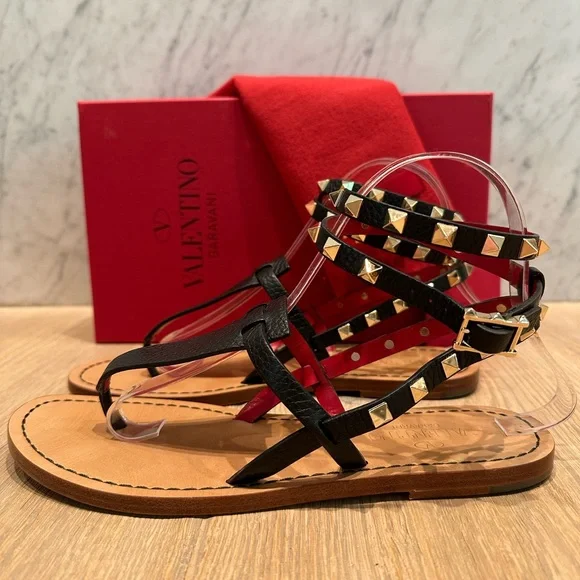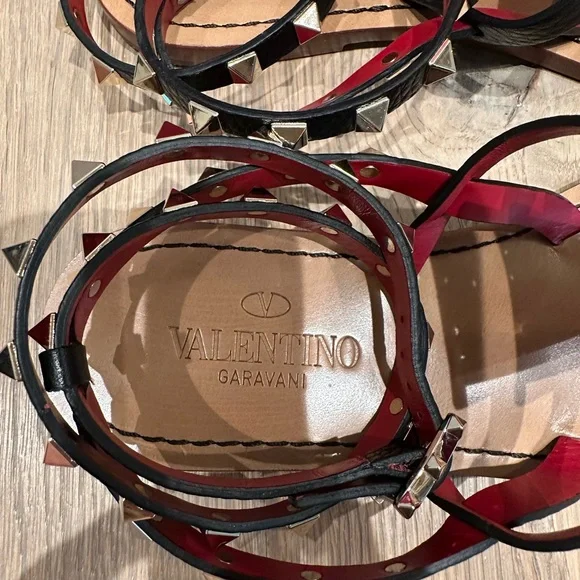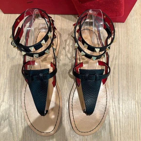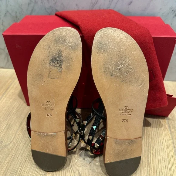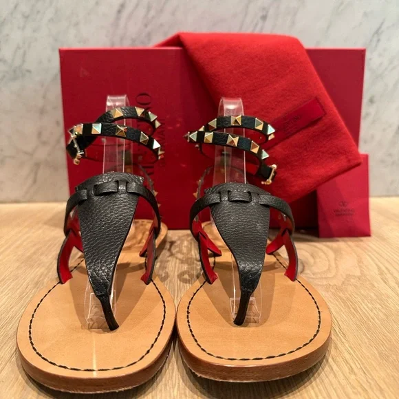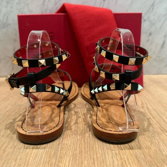 Valentino Rockstud Gladiator Black sandals. In excellent condition. Normal wear on soles. Gently worn. Size 37.5original box and shoe bag included.
