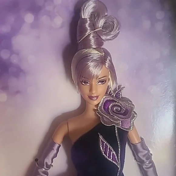 Barbie The Sterling Silver Rose Doll in elegant black and purple attire. Collector´s edition with exquisite design. La Rosa Exotica Bob Mackie design. Barbie has never been...