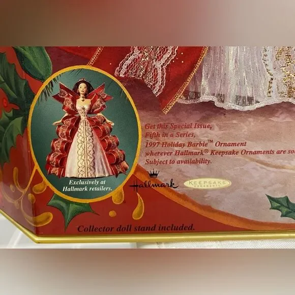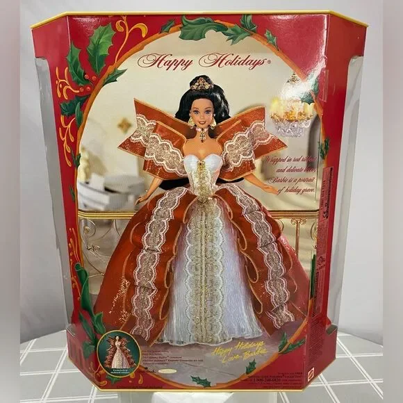 Vintage NIB 1997 Holiday Barbie Happy Holidays Gold Special Edition Christmas Barbie NOTE : This is one of the Rare / Unique Misprinted Boxed Barbies where the Barbie Eyes are...