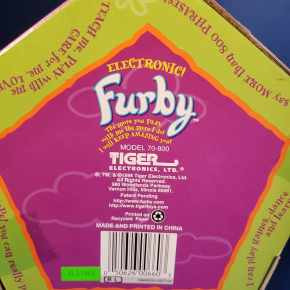 Vintage New Old Stock Furby. Tiger electronics. Never Opened. 1998 with tags.