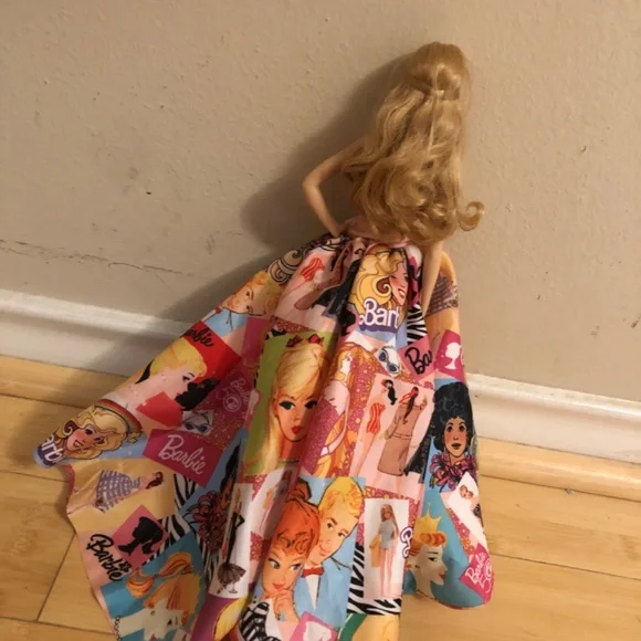 Barbie 50th Anniversary Generations of Dreams DollThis beautiful doll features, blonde hair, blue eyes, and stanzas 12 inches tall.Doll is dressed in an exquisite gown, embellished with illustrations of the Barbie heritage, is embellished with silver sequins…bright with hopes and wishes commemorating 50 years of inspired dreams!Excellent condition!