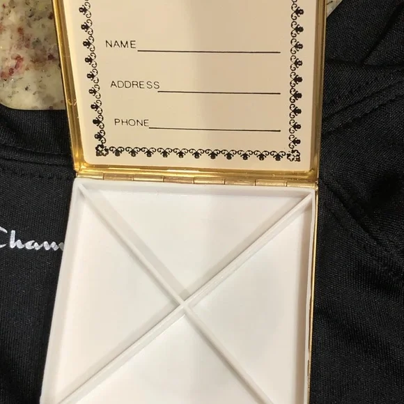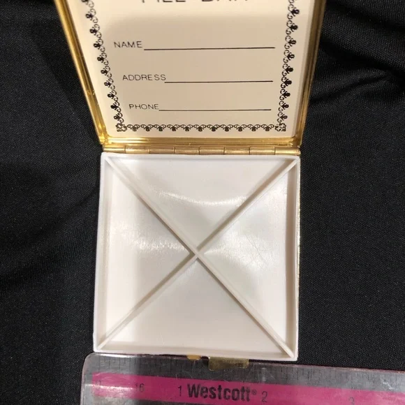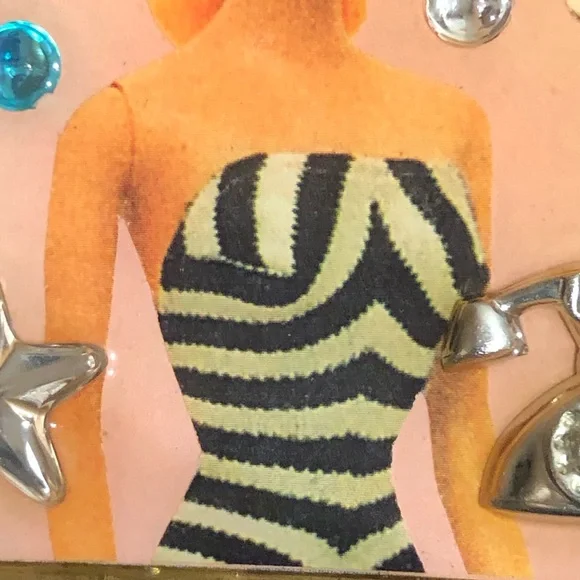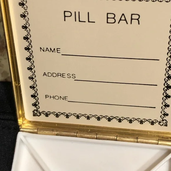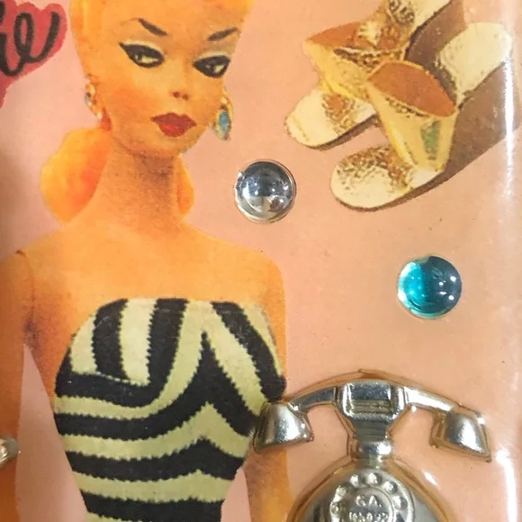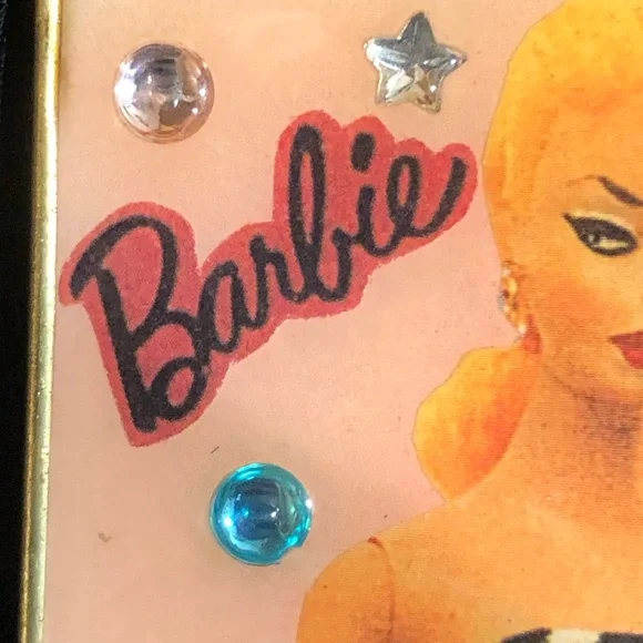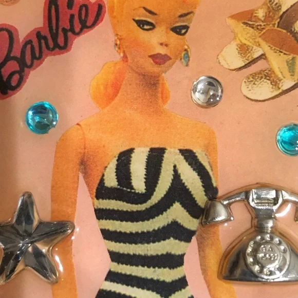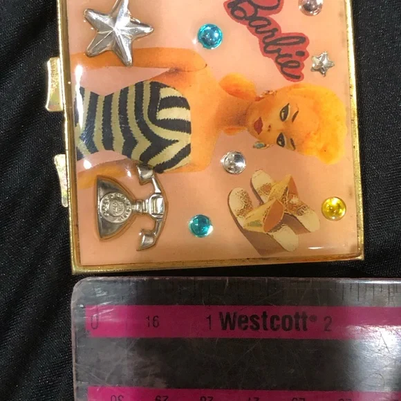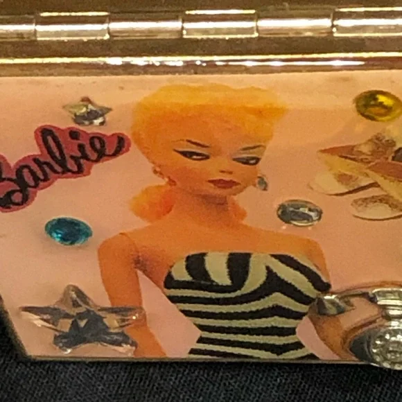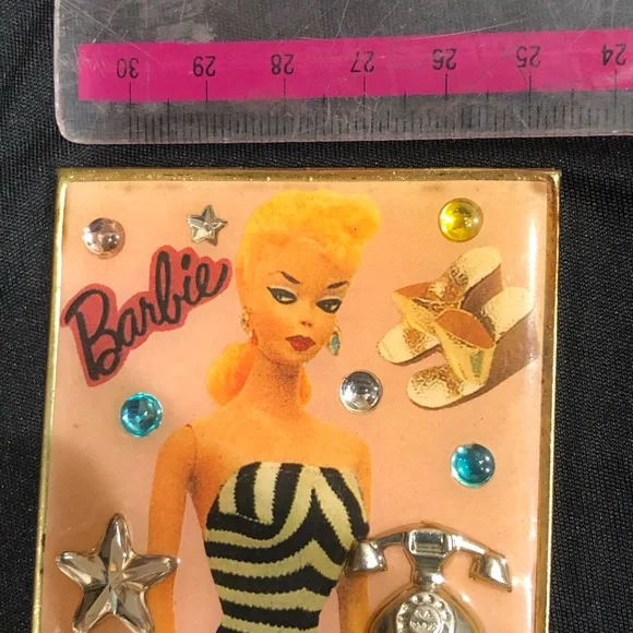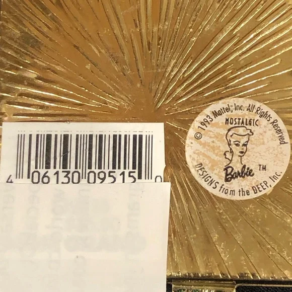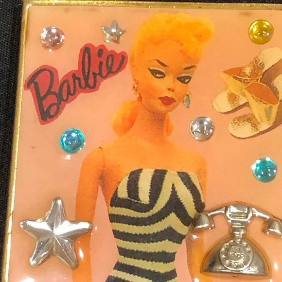 Add a touch of retro charm with this Barbie vintage-inspired pill box. Featuring a mix of gold and silver tones, it´s perfect for any Barbie enthusiast!!!1993Mattel, Ltd. Copyright Maker : Designs from the Deep, Inc.Rare pill box. Hard to find new!Some of the objects on the front cover are three dimensional. For example: the silver telephone.Sticker is still on the back. Store receipt is there, too. See all photos for your review on details and condition.