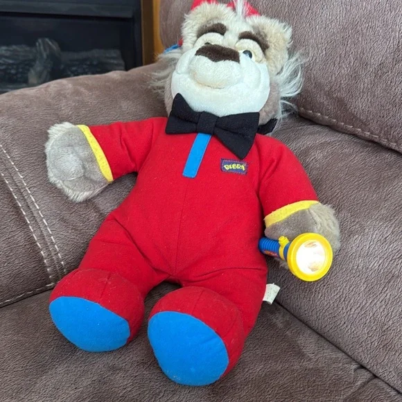 Adorable plush toy in vibrant red and blue. Perfect for kids to cuddle and play with.Bubba works great, says many different phrases, flashlight works 18” long