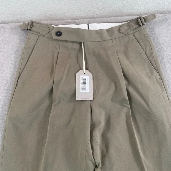 Natalino Single Pleat Brushed Cotton Trousers Men 28Lx34 Beige Side Buckles NWT