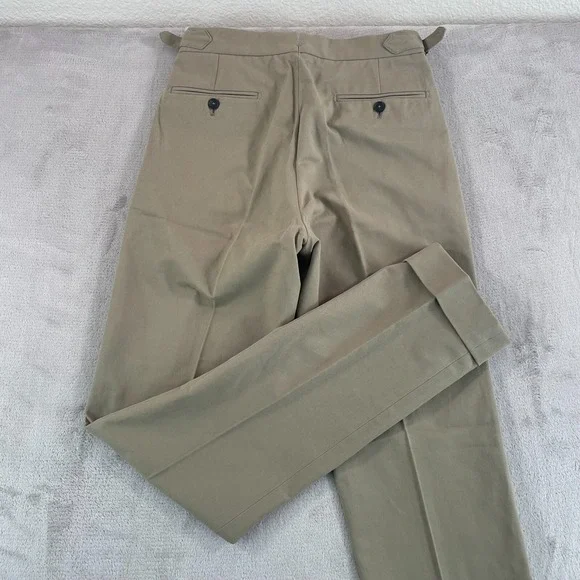 Natalino Single Pleat Brushed Cotton Trousers Men 28Lx34 Beige Side Buckles NWTPlease view pictures for measurements. Please view and zoom in on all of the pictures as they are...