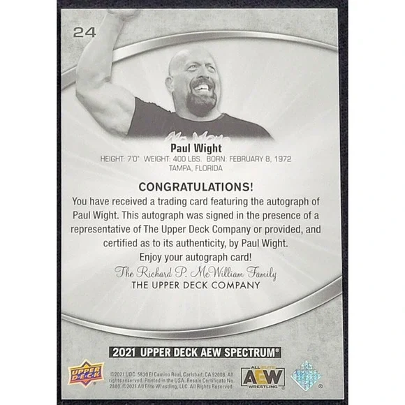 2021 UPPER DECK AEW SPECTRUMPAUL WIGHT AUTOAUTOGRAPH BIG SHOW