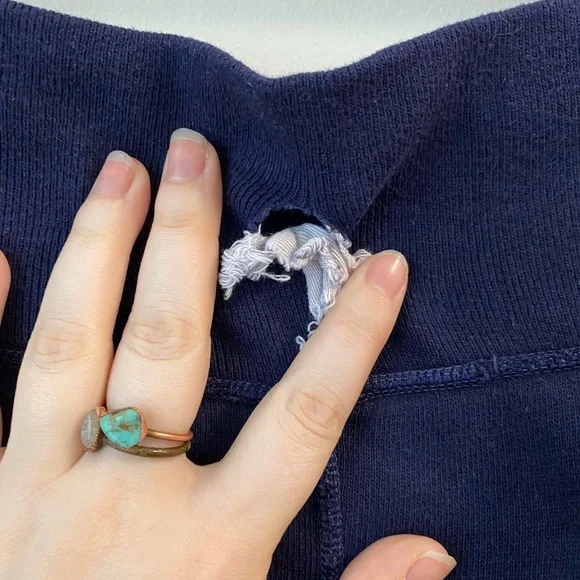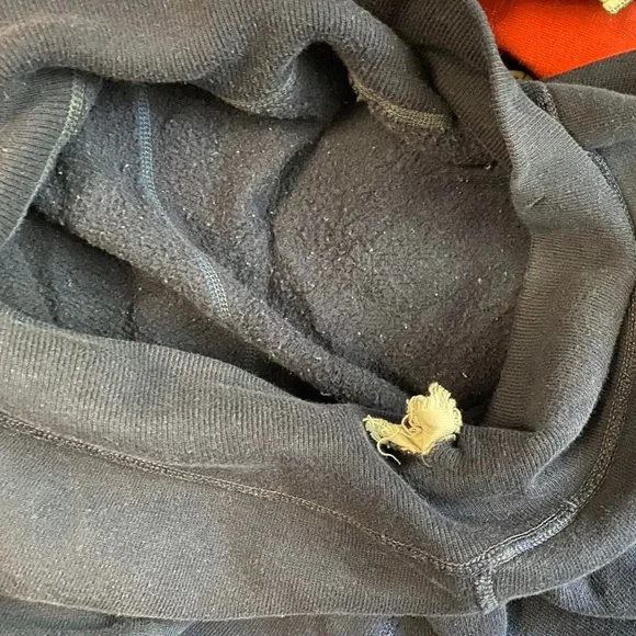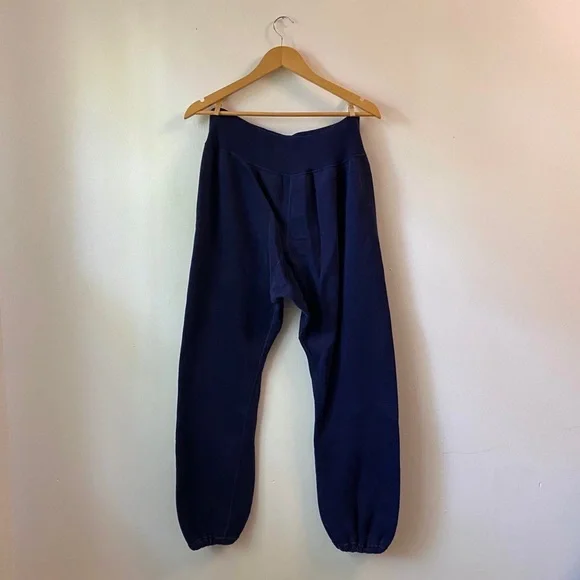 Genuine vintage 1940s navy blue sweatpants. These sweats are a super comfy, thick fleece-lined cotton. Featuring a thick elastic waistband, and a drawstring hole (but the piece sticking out isn’t adjustable). Crotch gusset seaming and a short elasticized hem. Amazing condition. Totally would keep these for myself, but they’re too long on me. Minor piling on the interior on the fleece, but no piling on the exterior. Two minor holes (both pinhole sized and not fully ripped) — one at the crotch, one on the back of the right leg (near the calf area). These aren’t noticeable, and aren’t fully a hole, but an indication that they’ll eventually need a mend. No tags, so check measurements. Fits like a M/L. Unisex.* I have the string that threads through the waistband for adjusted fit, will try to thread through measurements flat:waist: 16in unstretchedhip: 22in unstretchedrise: 14ininseam: 29inhas stretch, so can fit larger that flat measurements.