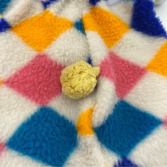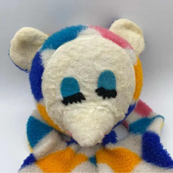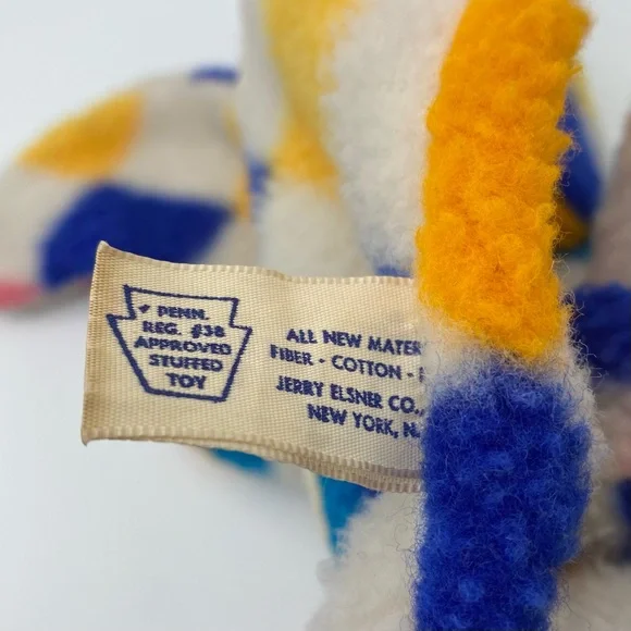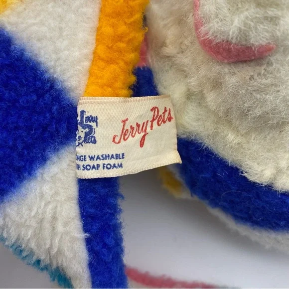 Preowned Jerry Elsner “Jerry Pets” vintage Pajama Bag Bear (I believe it’s a bear) Animal Plush. The bag measures about 16-17 inches. It is colorful with a Diamond pattern. I’m not sure exactly when it was made, but somewhere in the 1950s-1960s. The holder was made in the USA. It’s in used condition. It does have wear from age. It also has a 2 inch long stitched area on the back. I’m not sure if that’s a fix or if it came that way. Please see pictures.